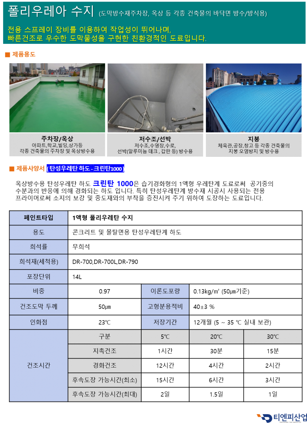 폴리우레아 제품설명서 페이지 정보 작성자 관리자 댓글 댓글 0건 조회Hit 71회 작성일Date 25-01-22 11:08 본문 목록 이전글도막형바닥재,미끄럼방지포장재 제품설명서 25.02.17 다음글티엔피산업 카다로그 (2024년) 25.01.22